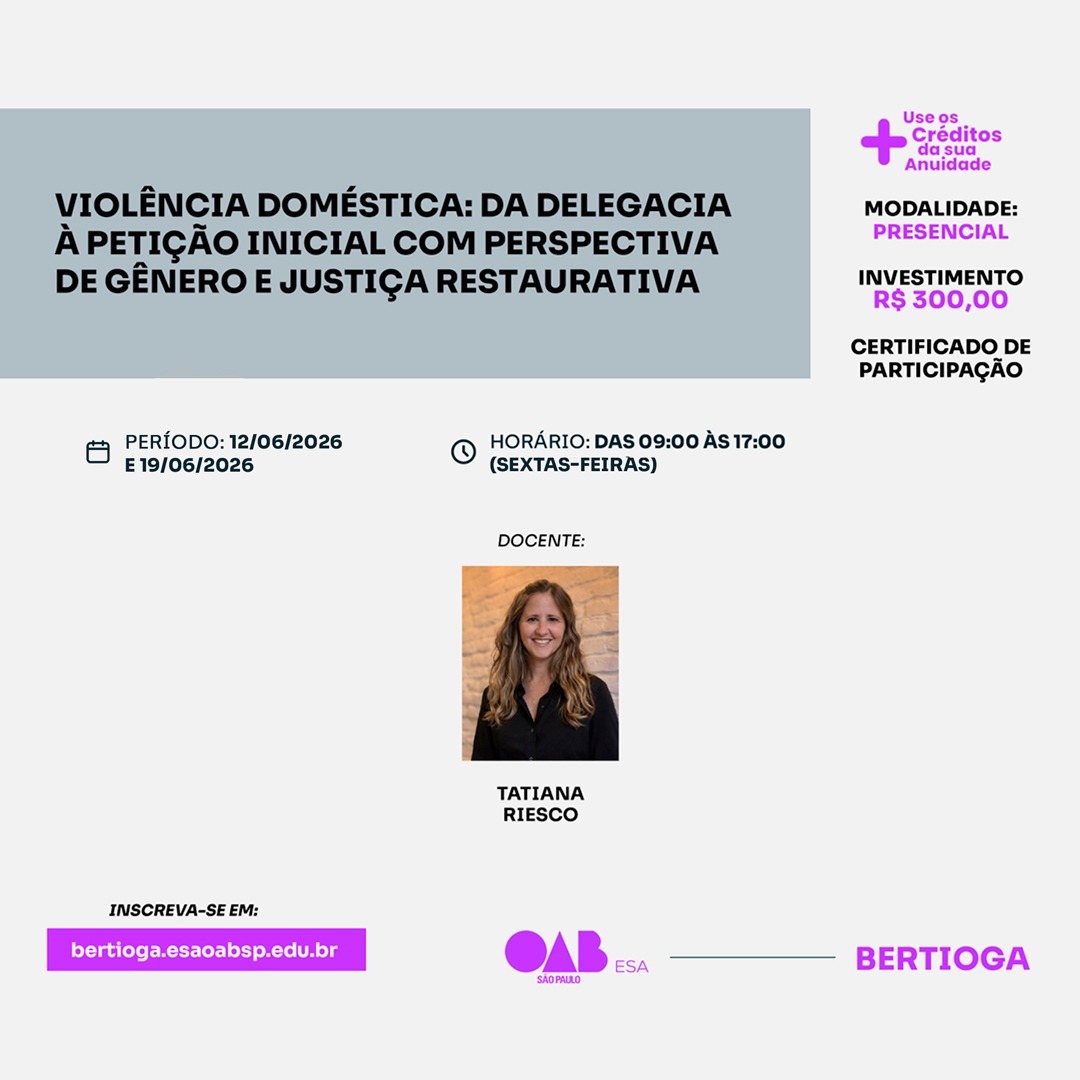 13201 - Violência Doméstica: Da Delegacia à Petição Inicial com Perspectiva de Gênero e Justiça Restaurativa